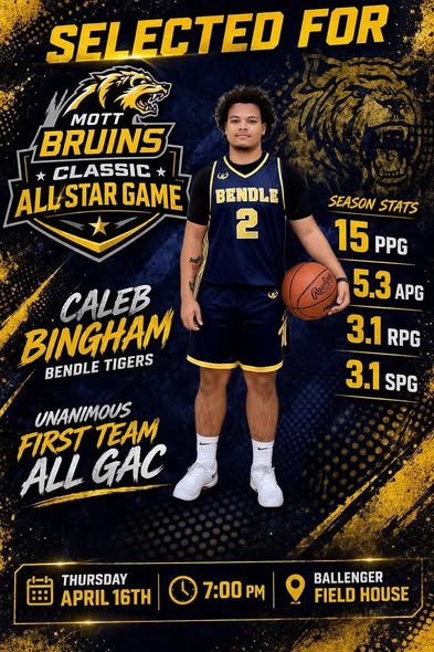 Congratulations Caleb Bingham and Coaches Tim Bunch, Malik Bingham and Josh McMananman for being selected to participate in the Mott Bruins Classic All Star Game tonight Thursday, April 15th at 7:00 pm.